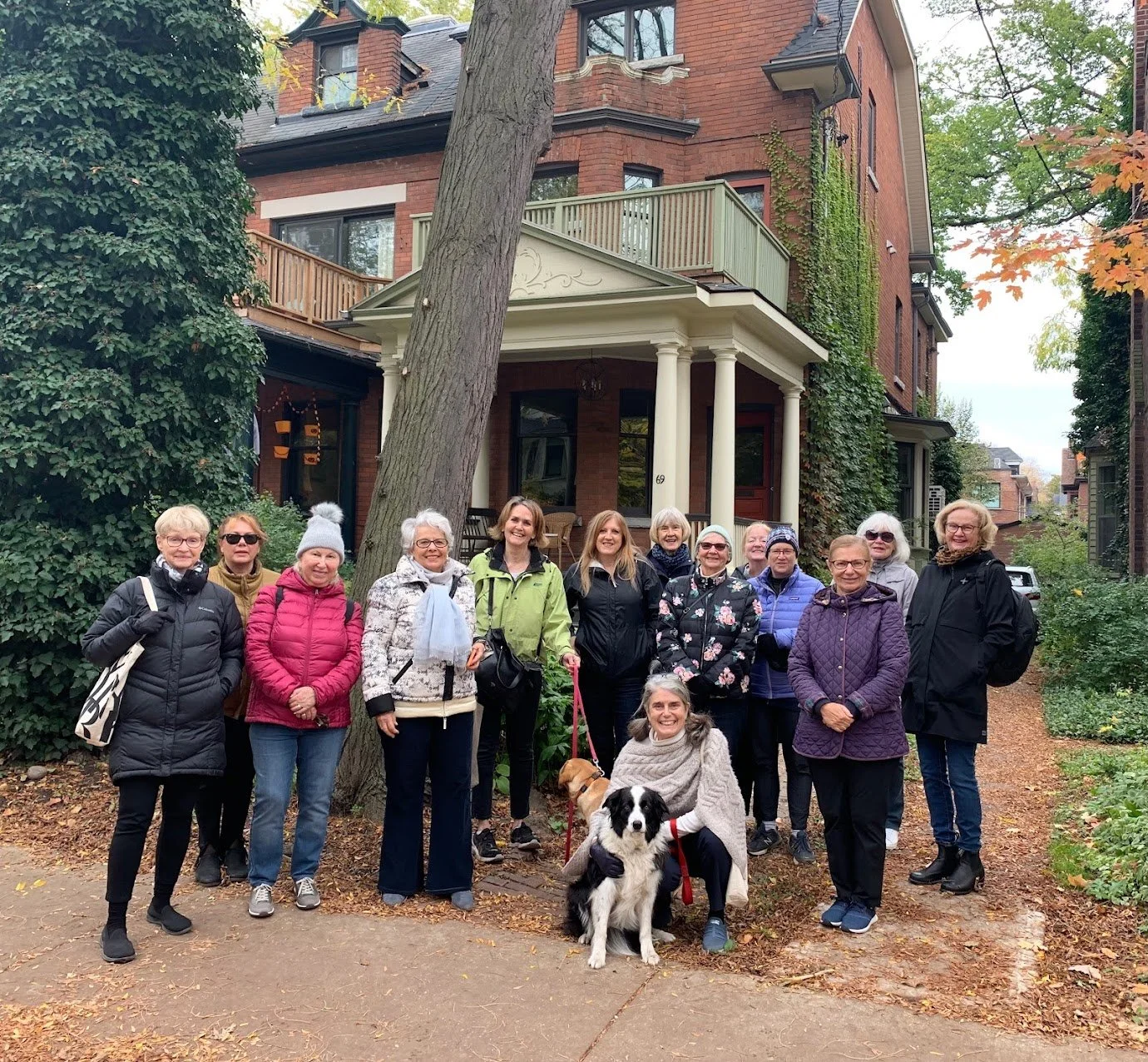 On October 28th, a group (and two happy canines) wandered through the Annex in the path of Jane Jacobs who left New York for Toronto in 1968. She moved to 69 Albany Avenue (the house featured in the photos) in 1971 and became an Annex fixture until her death in 2006. We looked at the architecture, discussed good community development and were so glad the proposed Spadina Expressway never was completed. Jane would have been right at home in our club!